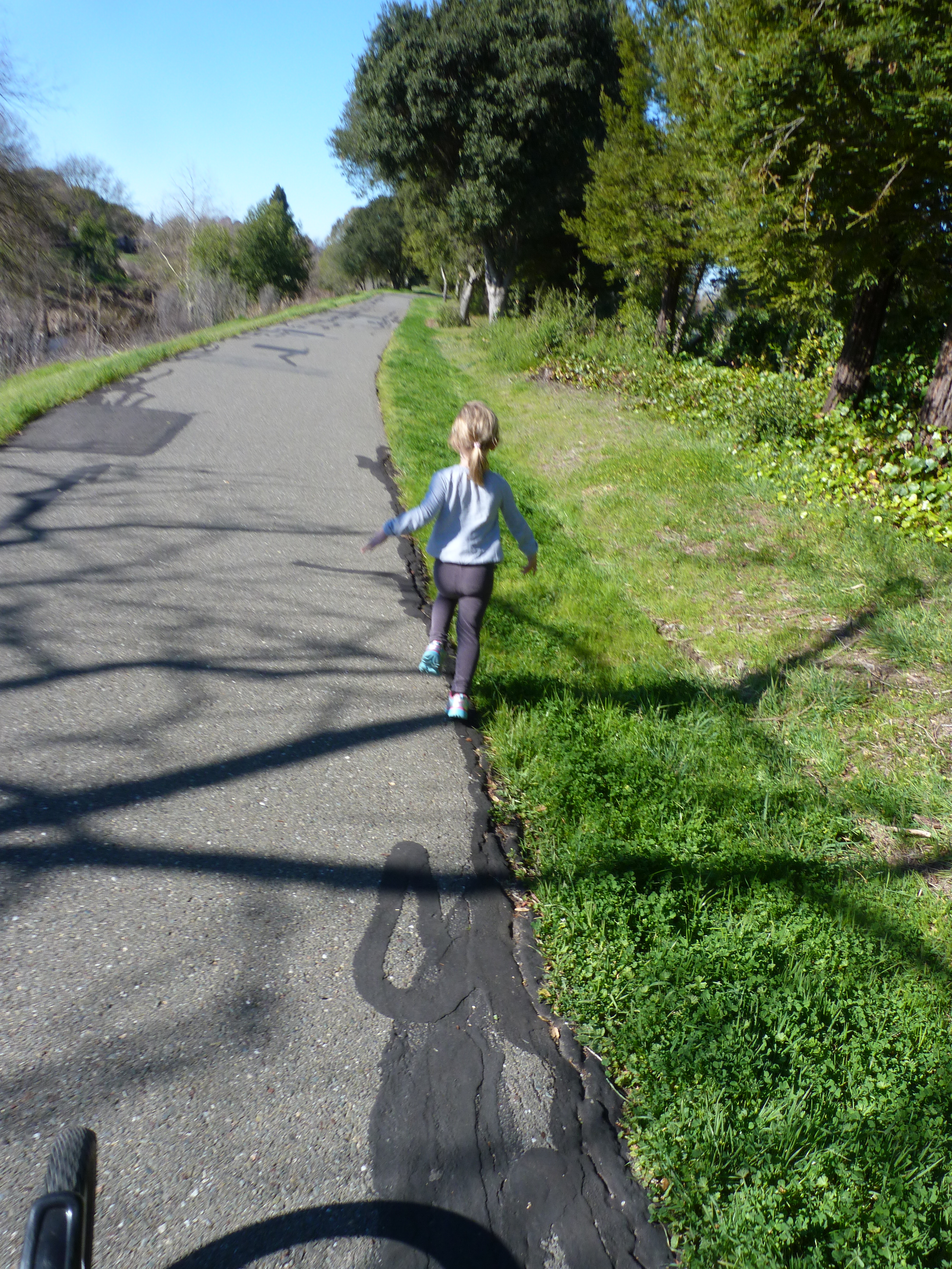 It was lovely weather this morning– sunny, mid-fifties, birds chirping, creek gurgling– I was so happy to get on the trail and it was fun to have V along for the ride.  Ridiculous weather for early February, especially considering that the Northeast was blanketed with two feet of snow last night.  In California we have a high cost of living, high taxes, and plenty of other issues, but we have perfect weather.  I’m always amused by Californians who have the audacity to complain about the weather here.  (Really?!  Have you ever lived anywhere else?)