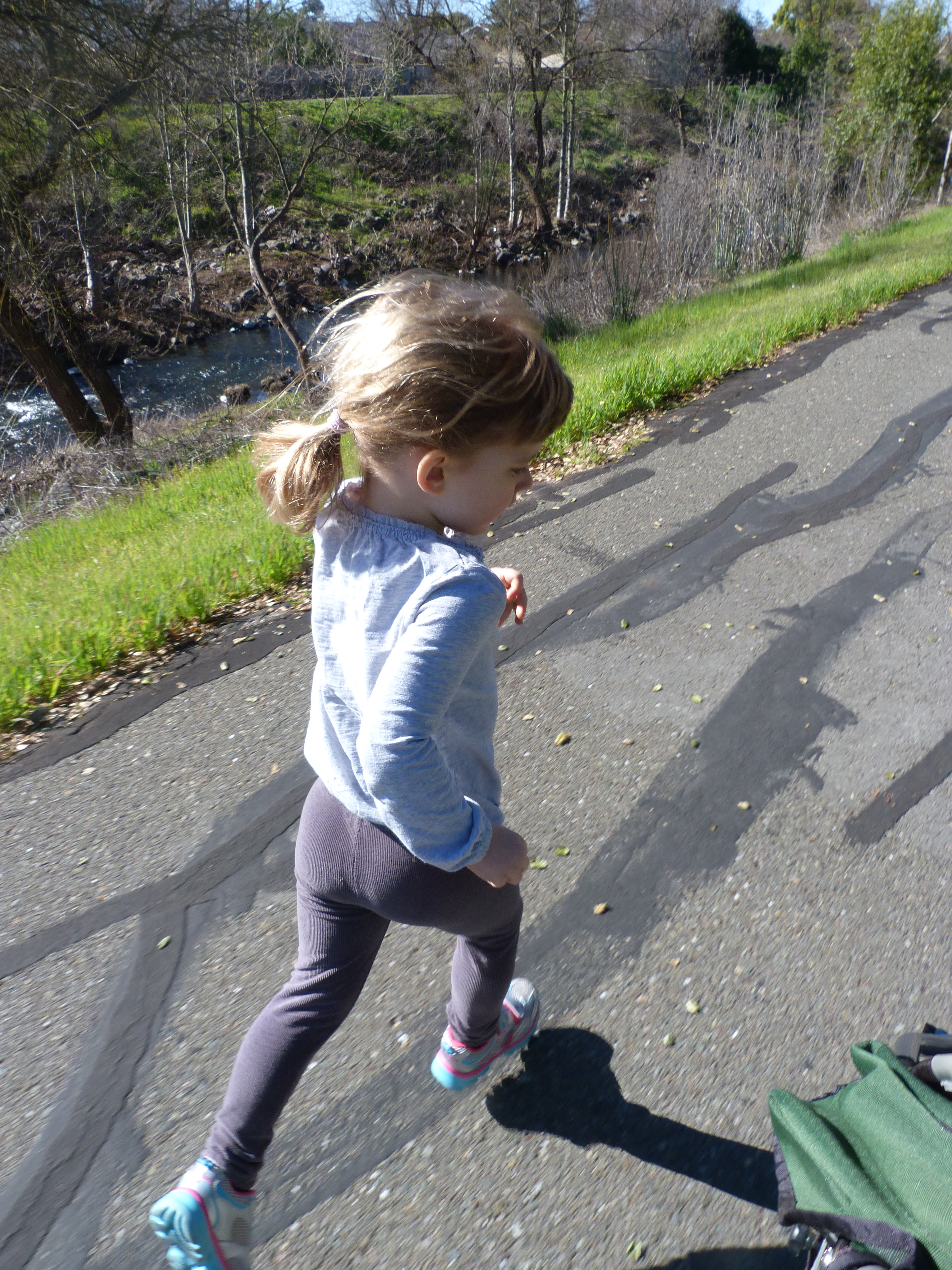 It seems strange to say it– that jogger has been a part of my life for a decade.  We bought it when our oldest was an infant, and he will be eleven in a month.  I’m still on the trail at least three times per week, but our youngest is in preschool all day and will be in Kindergarten in the fall.  And she isn’t that interested in sitting in it.  Today she ran alongside the stroller for about two miles.  She is over forty pounds, getting too big for it anyway.